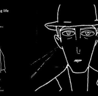 A man is walking down the street in the dark and dreaming, suddenly the wind blows.