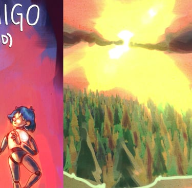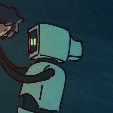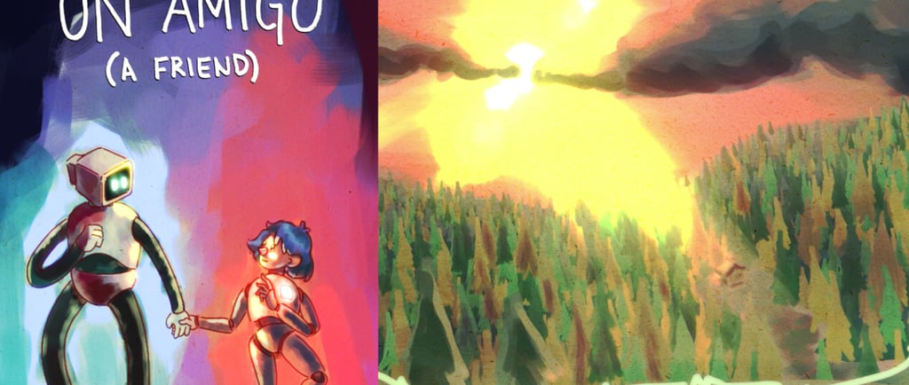 "A Friend" tells the story of a robot who finds an old cabin in the middle of the woods. Inside the small house, he stumbles upon a puppet who appears to have an empty space in his chest, just where a heart would go. Searching through an antique box, the robot finds what appears to be a shining crystal… and with it, the secret to giving life.
