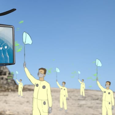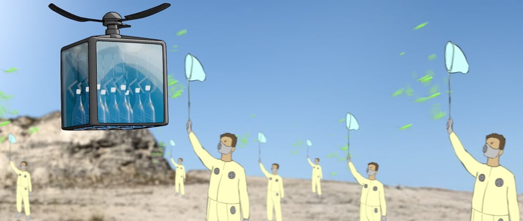 A single drop of water is carried inside a bottle by a drone. It travels across a scorching, futuristic desert world where each place becomes increasingly dangerous. Along the way, it narrowly escapes a man with a net, a boxing kangaroo, and giant jellyfish… until it finally finds itself in the middle of a billionaire’s party.