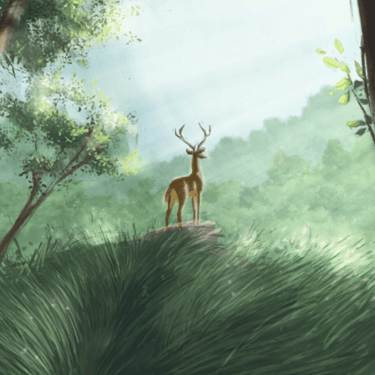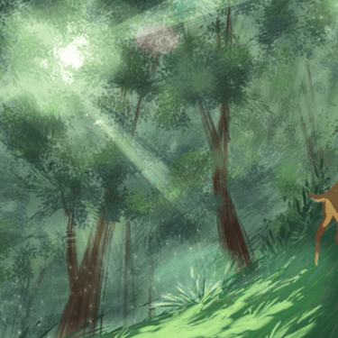 A deer in the forest realizes that it is being chased by hunters. It quickly runs away and is attacked and injured by them on the way. It finally escapes from them. When it reaches home, it finds that its family has already been killed by hunters. It hears the hunters coming from afar and does not run away anymore.