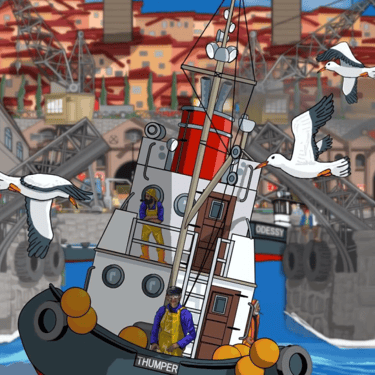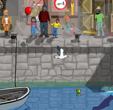 A young girl standing in a busy harbour, feels alone. Even though she is standing with her father and brother, she feels alone. She is holding a red balloon and lets the balloon go. As it rises into the sky and through the clouds, it is joined by many other balloons. She is not alone.